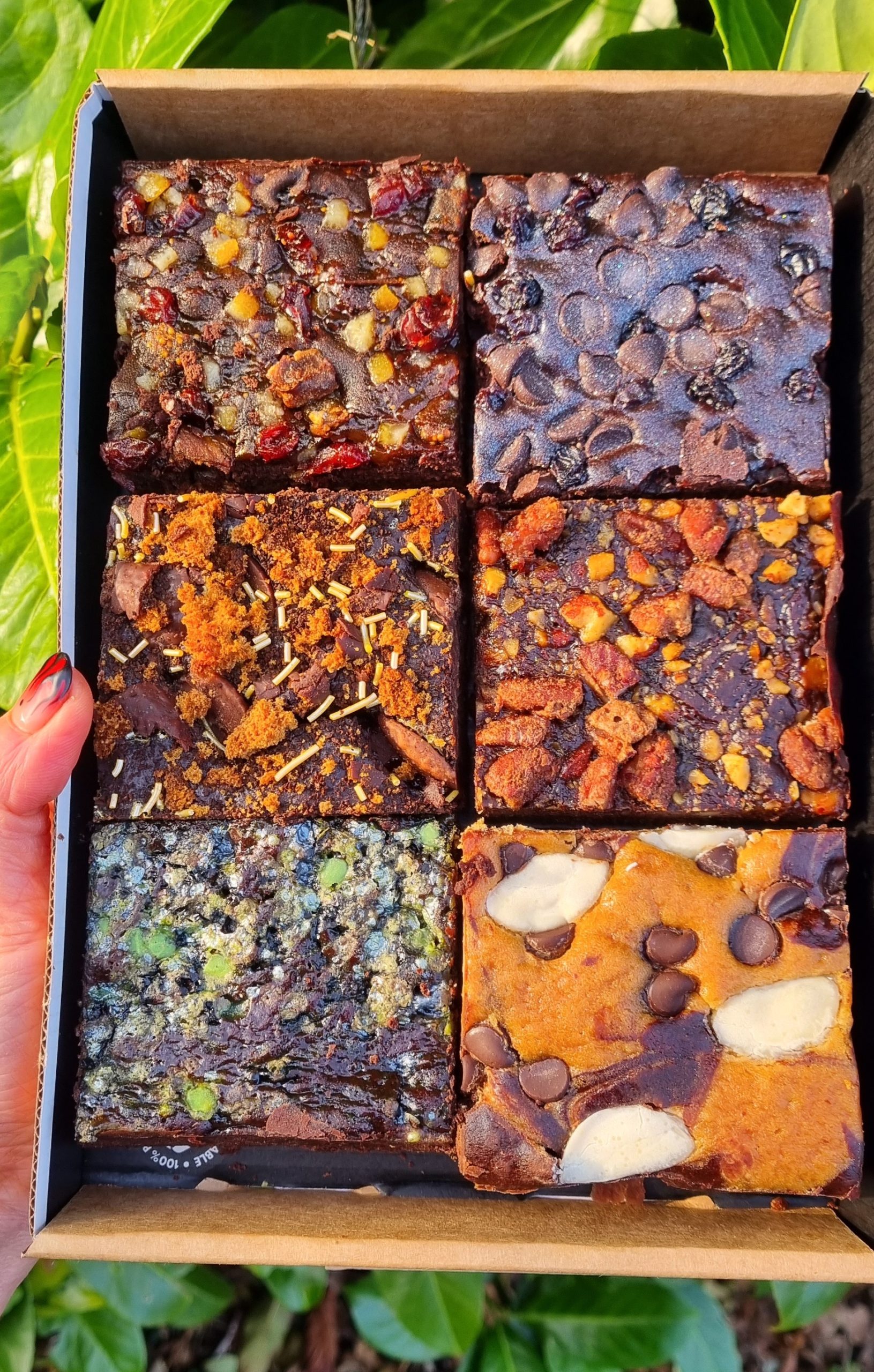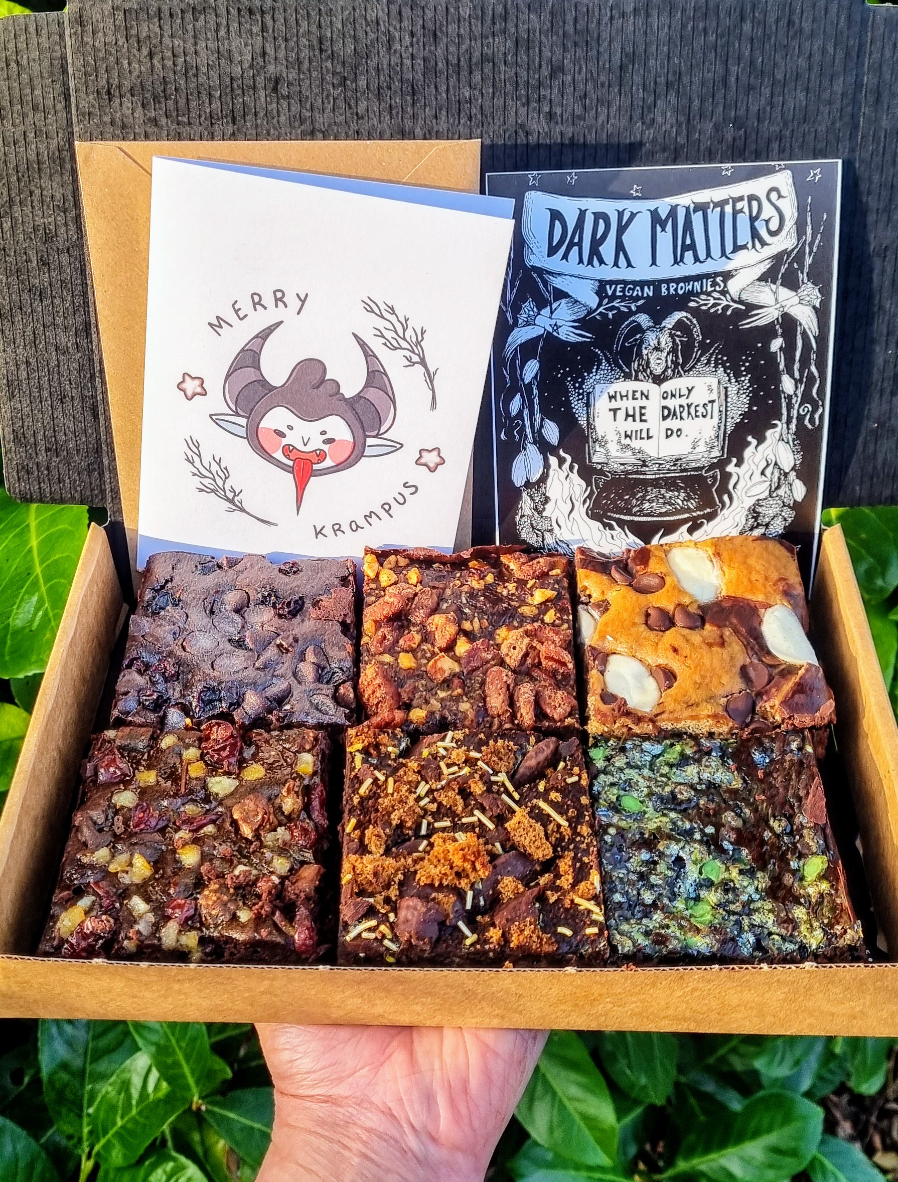 Spoil someone silly this gifting season with a box of 6 or 12 enormous and decadent vegan festive Brownies!